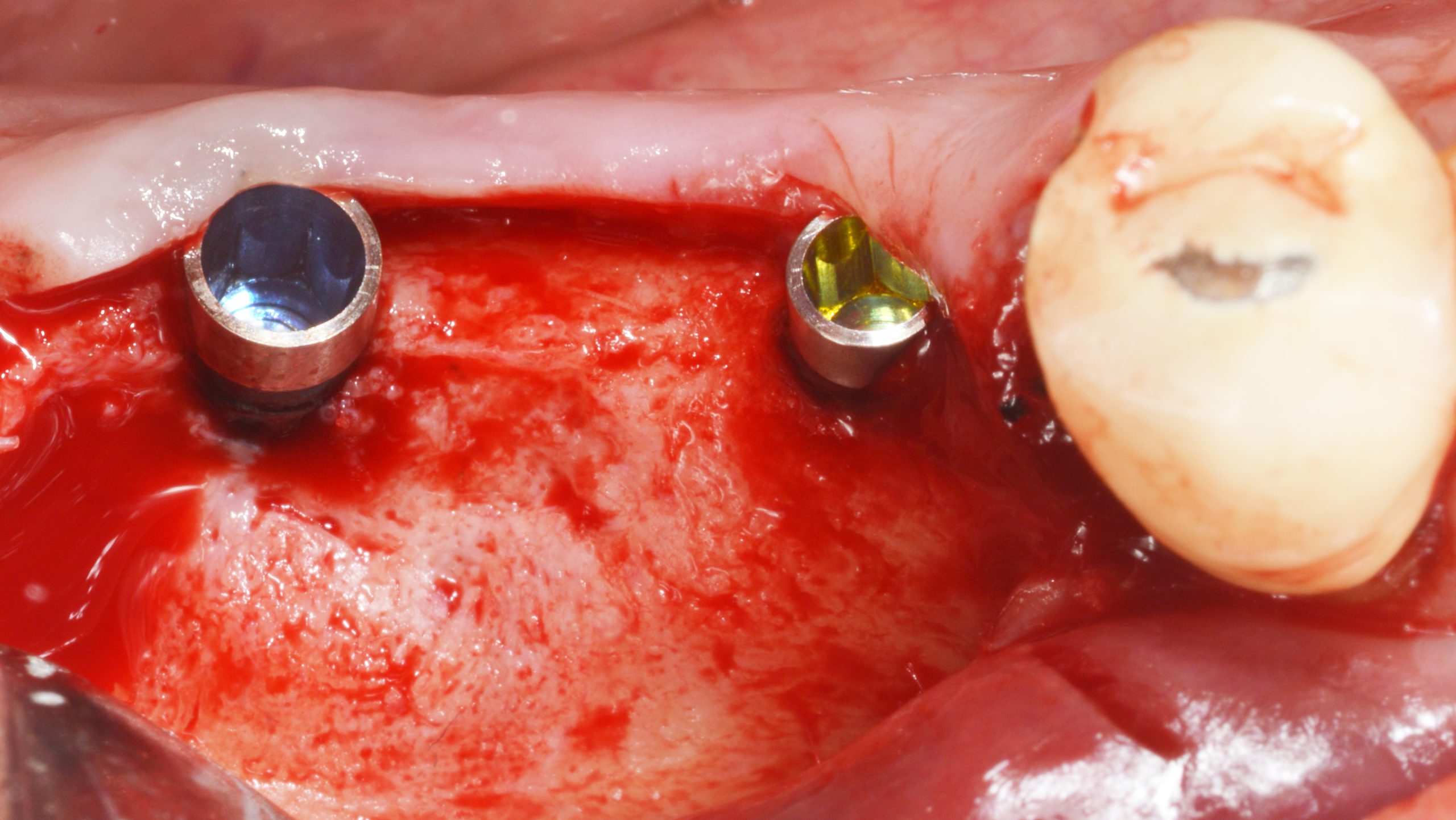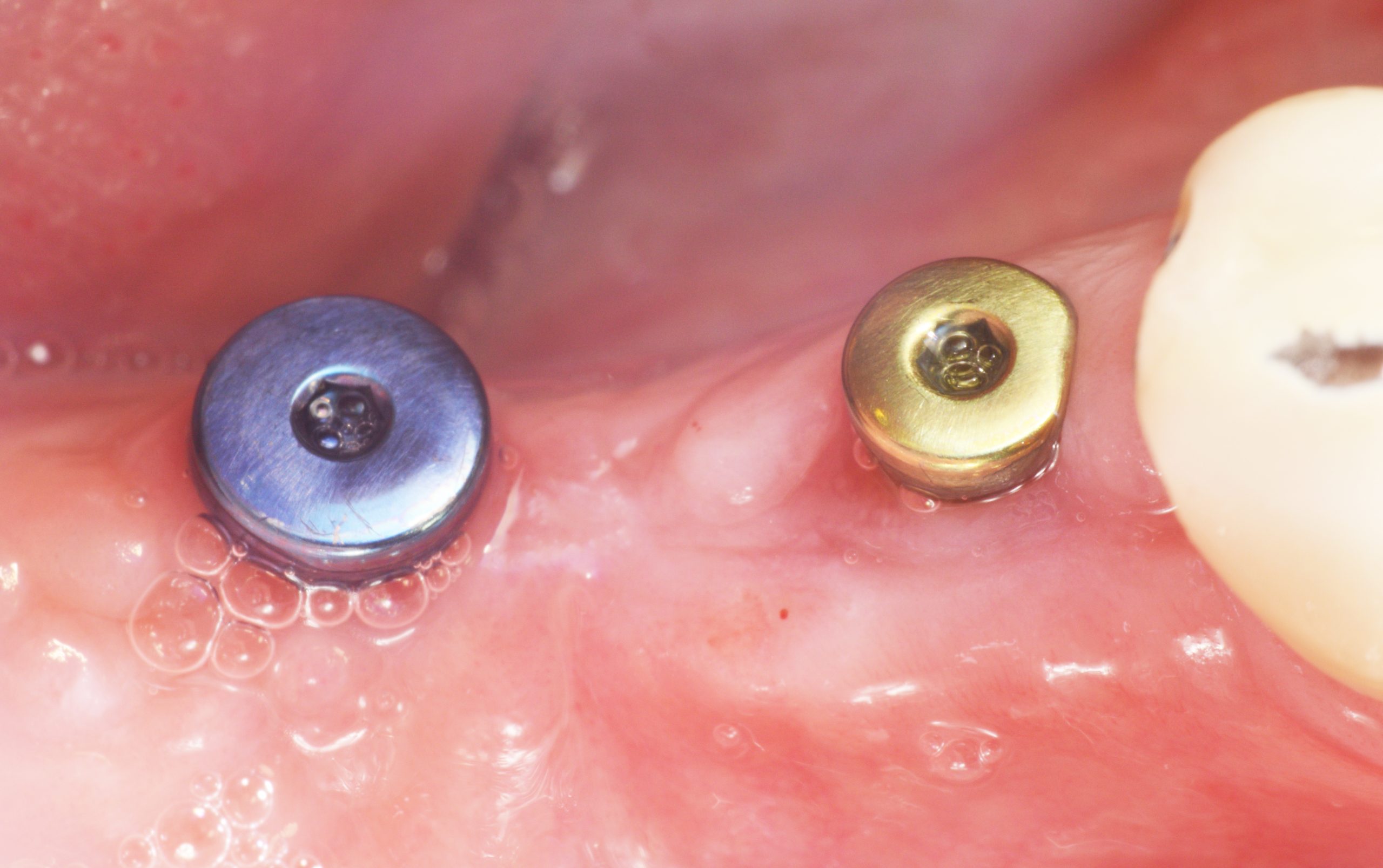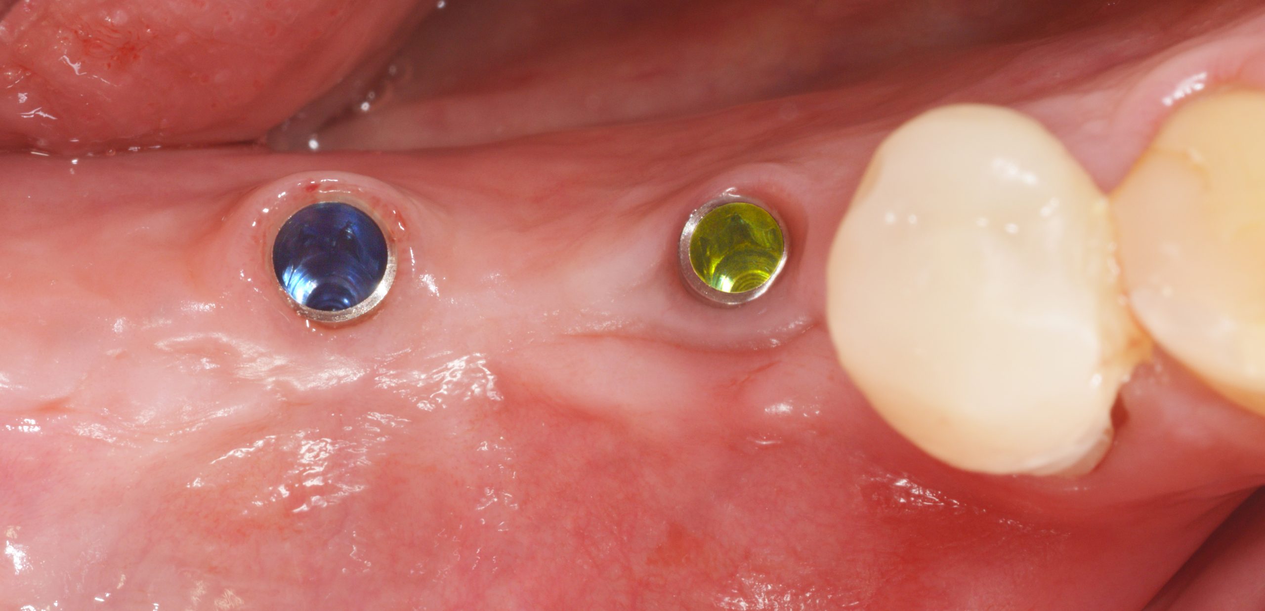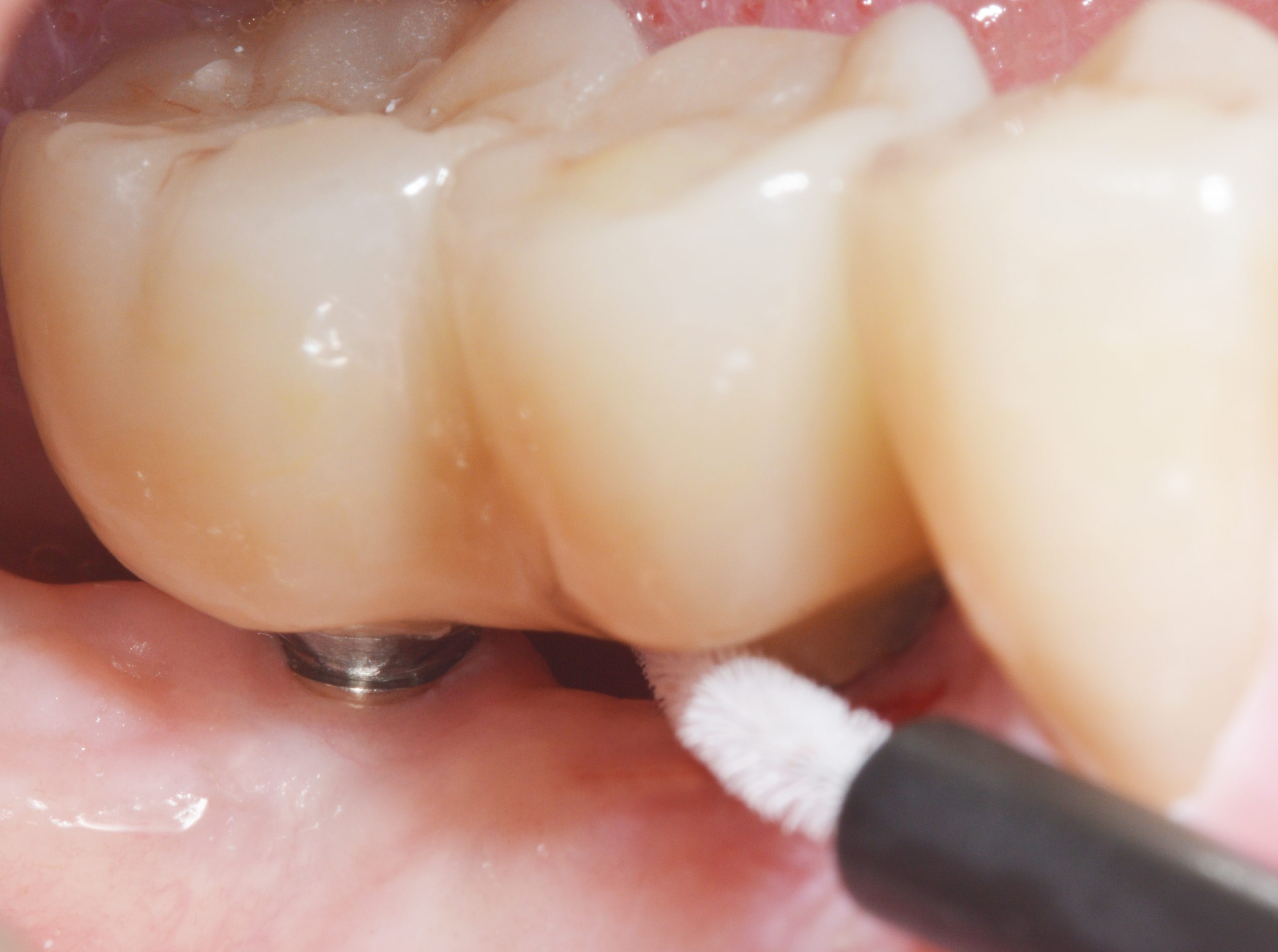 During open healing, cleaning checks were carried out with instructions to also clean the cover screws using special brushes to ensure an inflammation-free peri-implant gingiva.