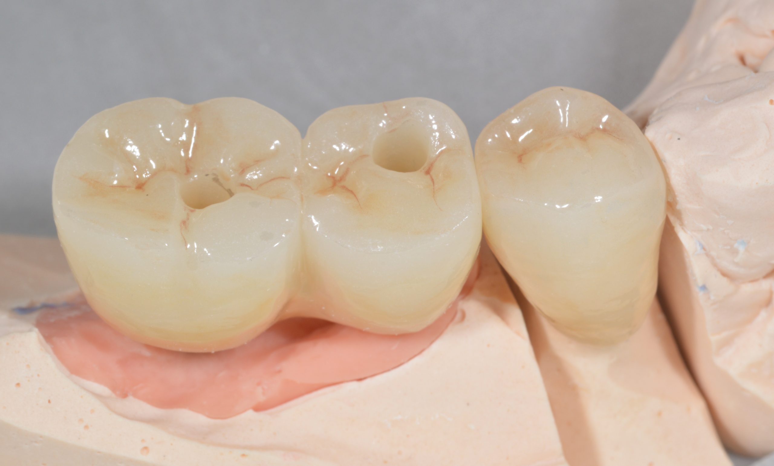 A ZrO2 block with two occlusal access channels was fabricated.